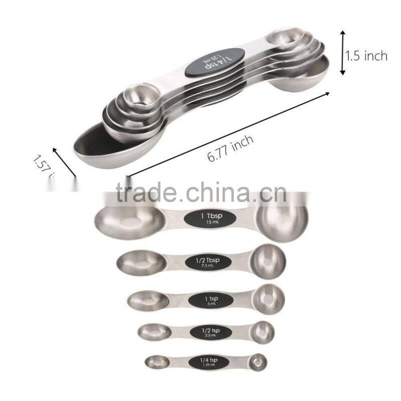 Magnetic Measuring Spoon for Measuring Dry and Liquid Ingredients for Home and Kitchen 430 Stainless Steel Set of 5