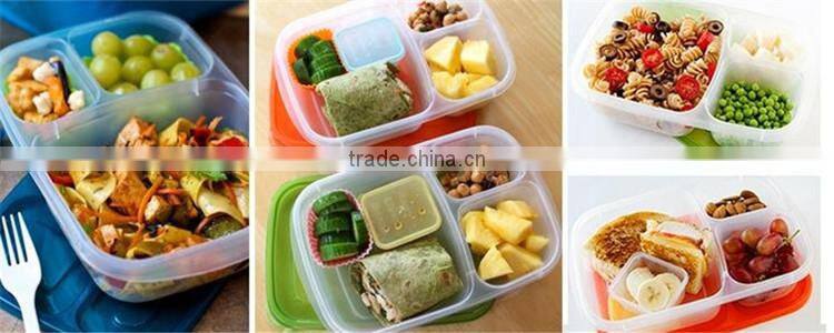 Plastic 3 Compartment Food Storage Bento Box With Lids