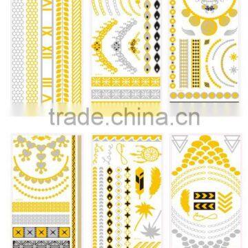 MCP001-006 Cheap Glitter Tattoo Paper Metallic Gold Removal 3D Temporary Tattoo Sticker