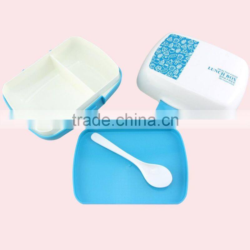 1.4LFood Grade Rectangle Two Layer Plastic Lunch Box With Spoon