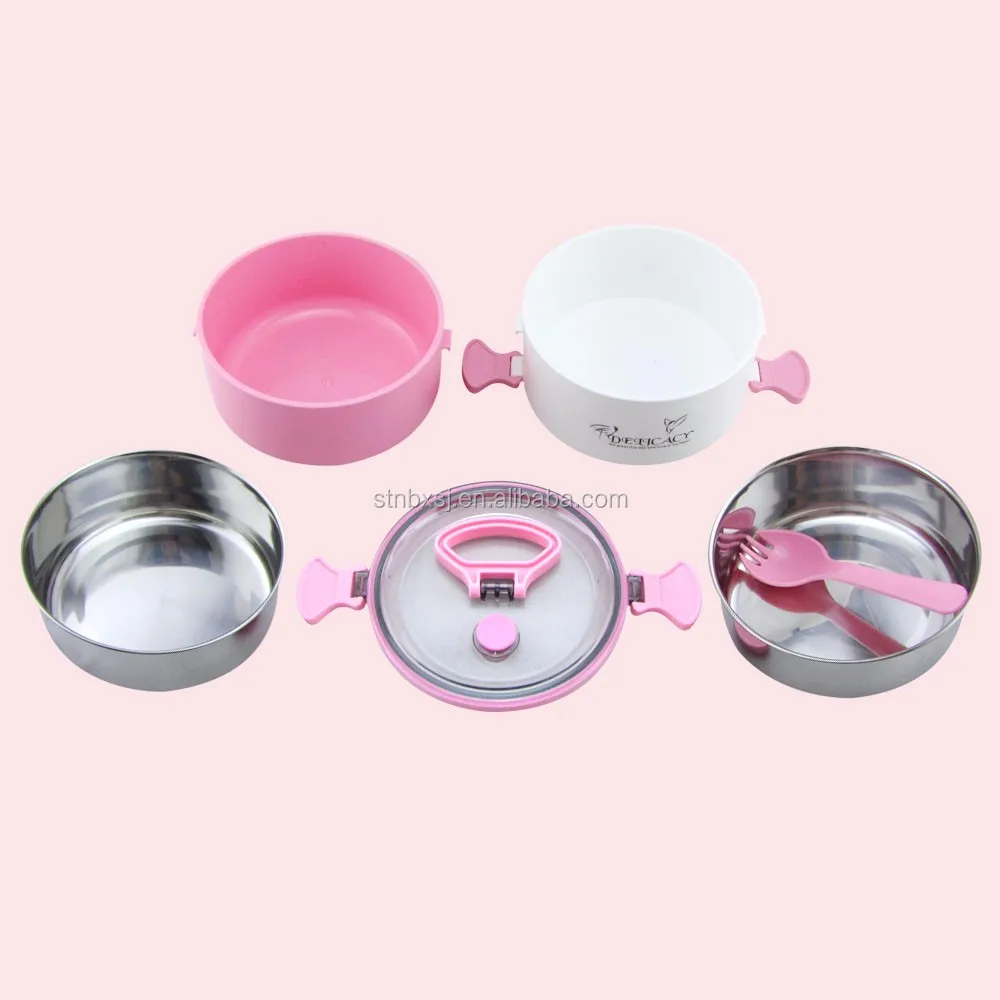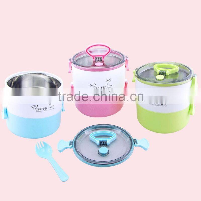 1.2L Round Shape SS Two Layers Keep Warm Lunch Box With Handle
