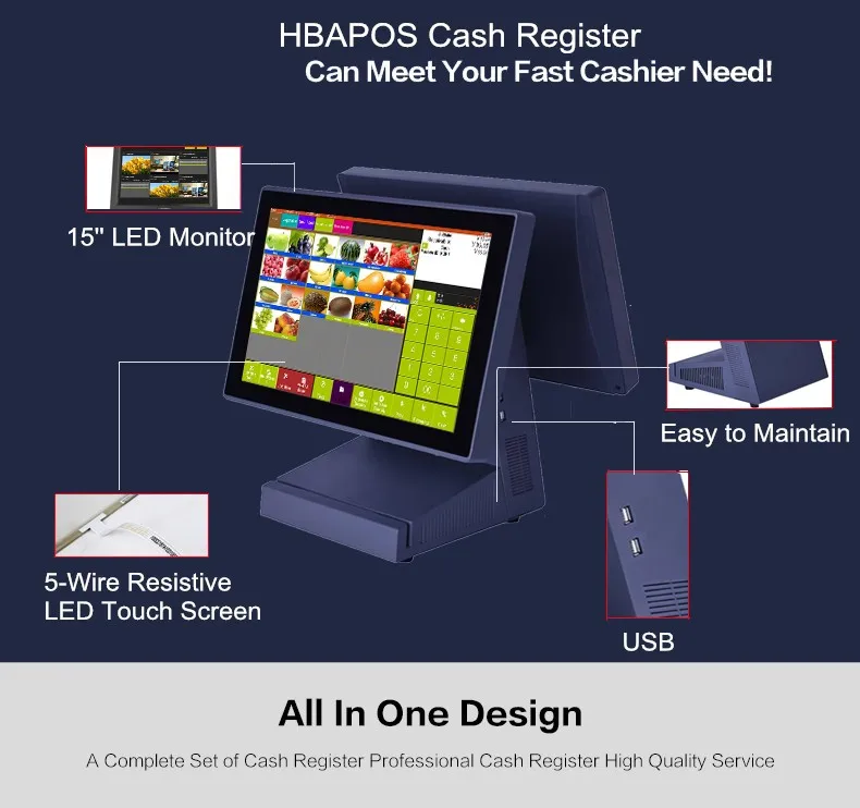 HBA-Q5T 32GB 15 Inch Touch Screen Pos Machine/ Touch Cash Register For Restaurant Touch Pos System