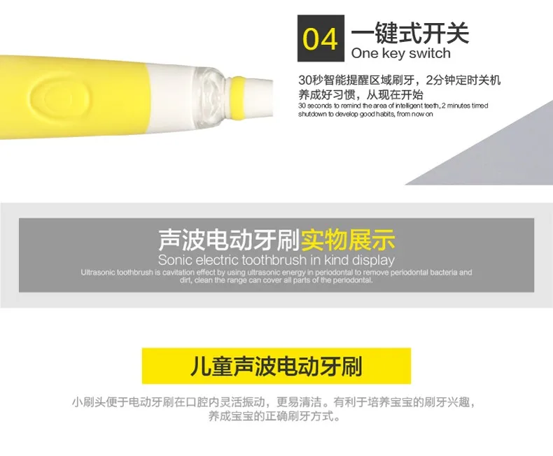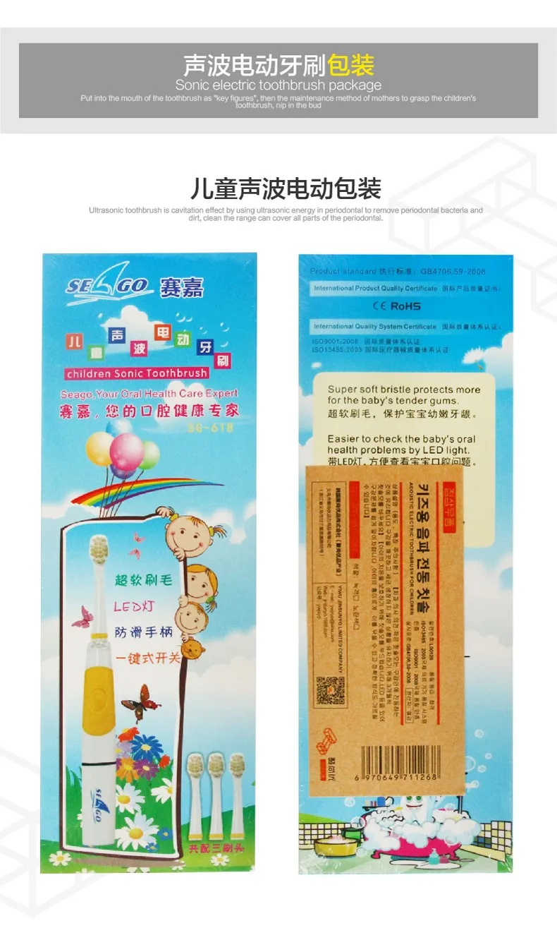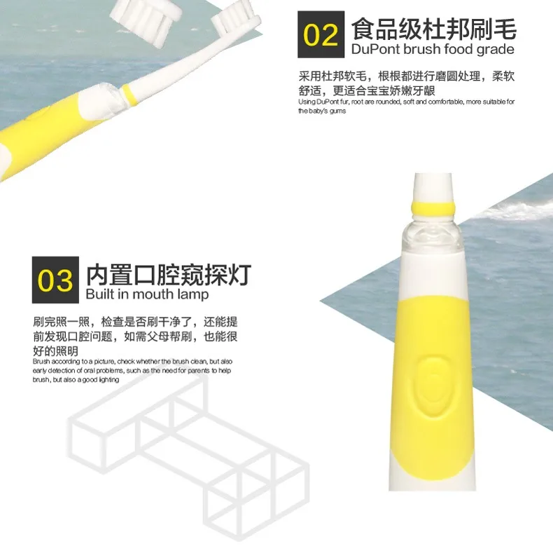 L00126 2017 Newest Design 3 Cleaning Modes White Clean Sensitive Sonic Electric Toothbrush for Kids