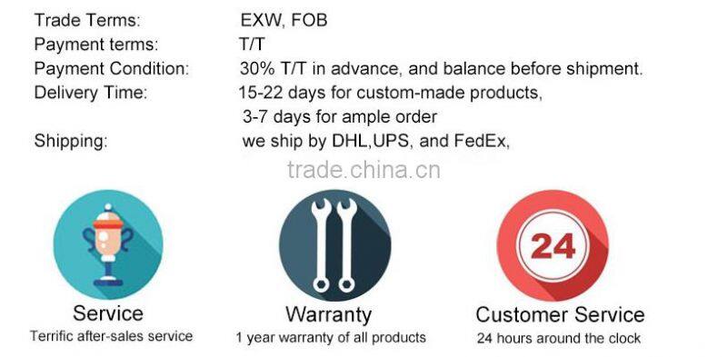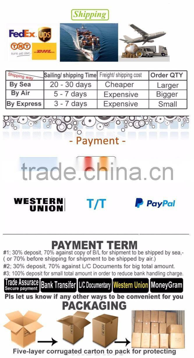 A: Payment<=1000USD, 100% in advance. Payment>=1000USD, 30% T/T OR L/C OR WESTERN UNION in advance ,balance before shippment.
