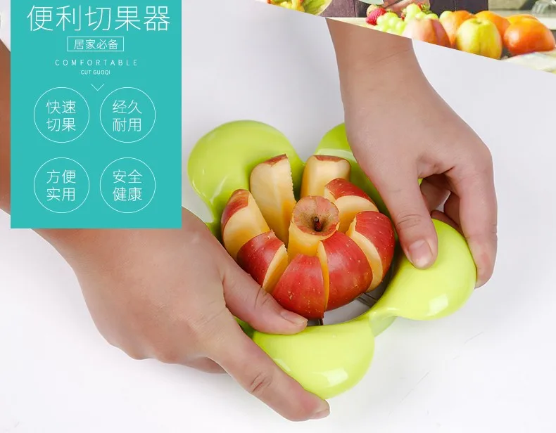 L00080 2017 New Style Good Plastic Fruit Apple Cutter Slicer With Wave Shape Handle