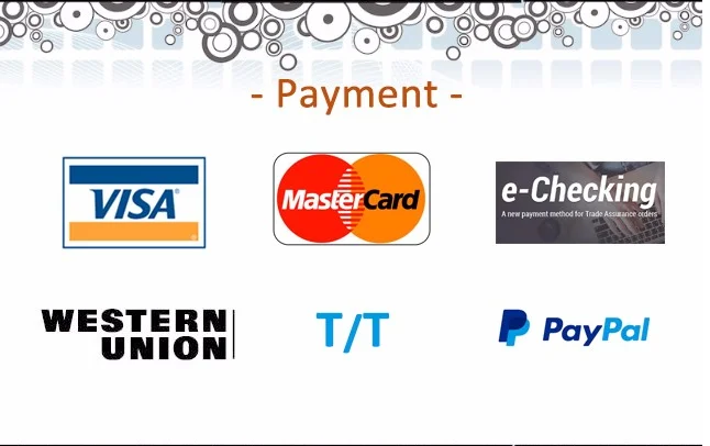 A: Payment<=1000USD, 100% in advance. Payment>=1000USD, 30% T/T OR L/C OR WESTERN UNION in advance ,balance before shippment.