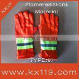 2014 New Design 97 Type Fire Retardant Fabrics Green and Orange Color Fire Safety Gloves Wholesale