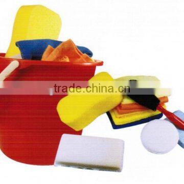 * 1 pcs brush ; * 6 pcs cleaning cloth ; * 4 pcs wash sponge * 1 pcs plastic bucket