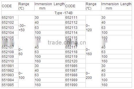 | Type | casing size L x W | thread | immersion (stem) tube diam.mm |