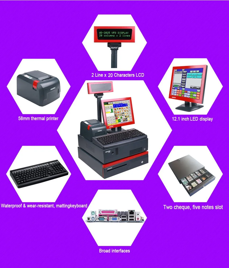 All In One Pos System/ Supermarket Cash Register HBA-A8 Retail Pos Machine In 2017