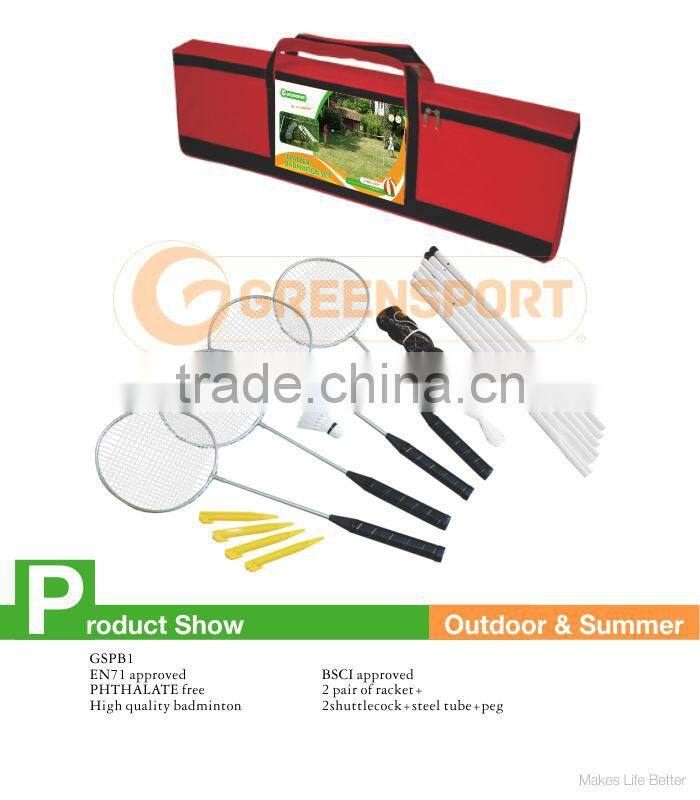 *2 pair of racket +2 shuttlecock+steel tube+peg*EN71 approved;