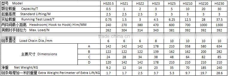 HSZ series chain blocks is a simple to use, easy to carry lifting device, also known as the "chain hoist" or "reverse chain".