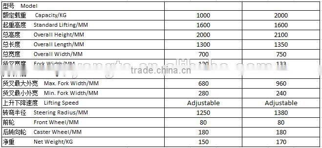 1Ton, 2 Ton Forklift With Pallet Manual Hydraulic Hand Stacker