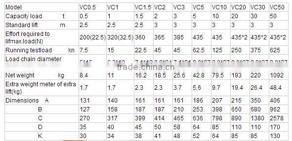 0.5-50ton Yale Kito Vital Toyo Manual Chain Hoist