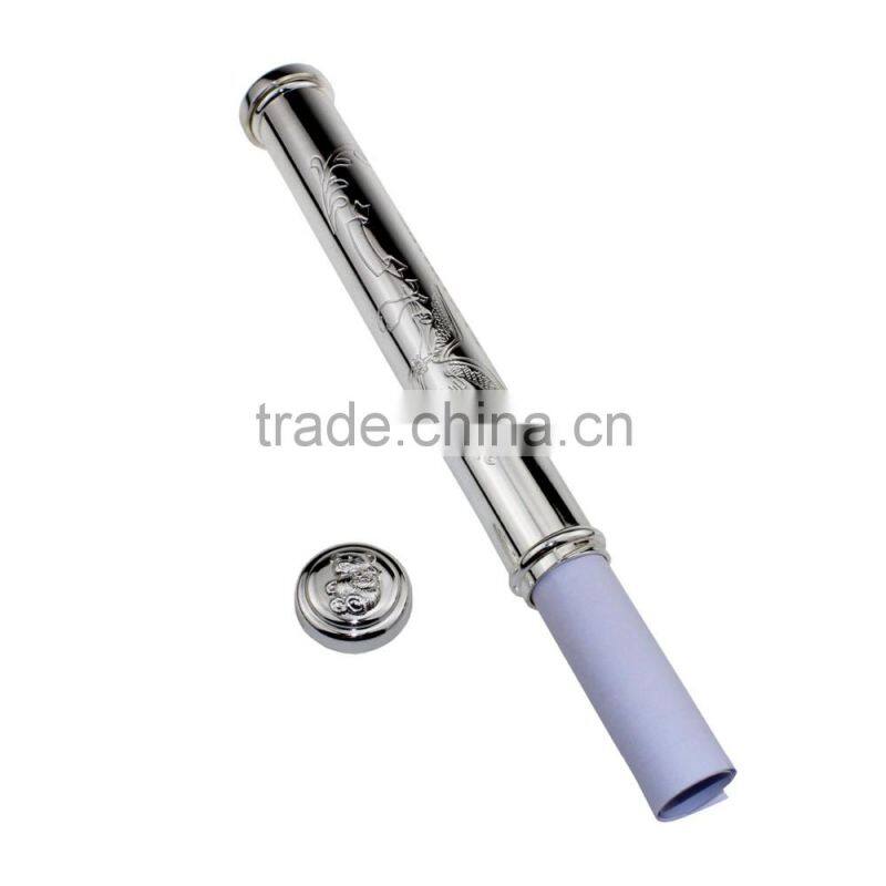 2016 Hot Sale Custom Logo High-end Metal Scroll Birth Certificate Holder Curved With Silk Ribbon