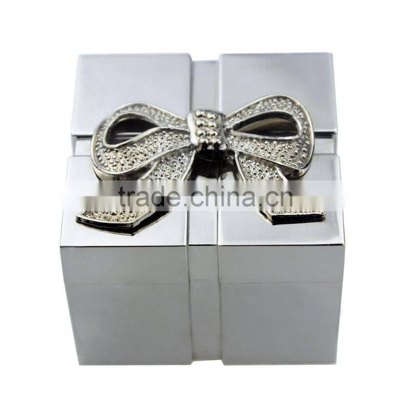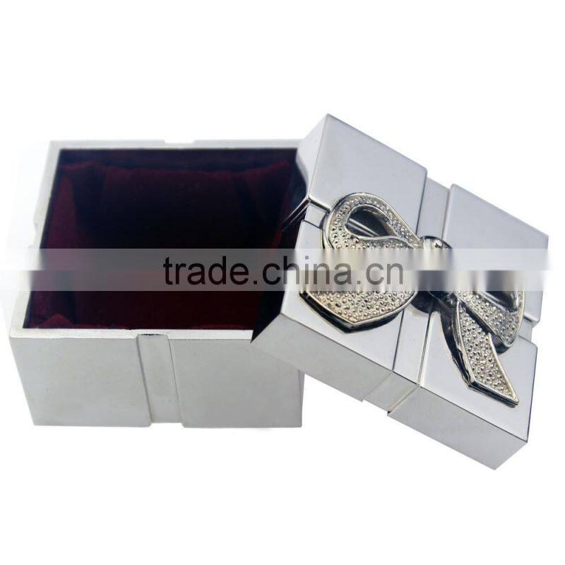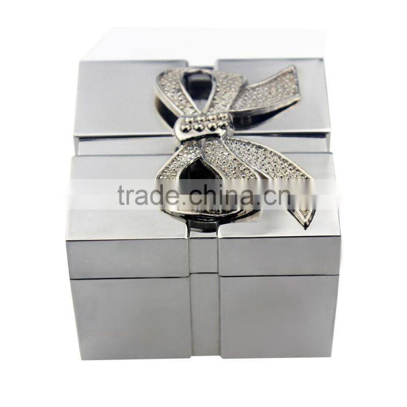 Metal Square Shape Bowknot Jewerly Box Box Gift at Factory Price