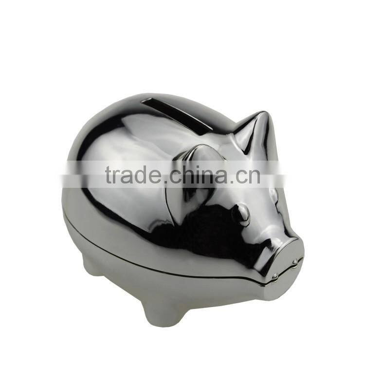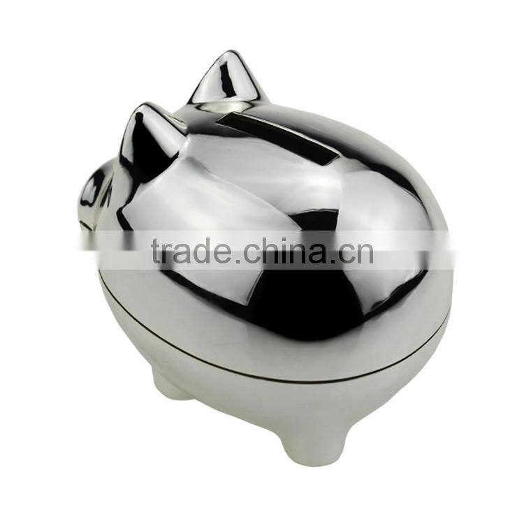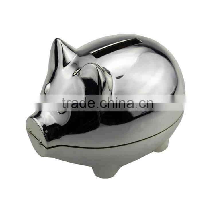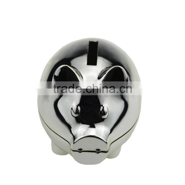 factory price zinc alloy silver plated lovely pig shape saving box as children gift