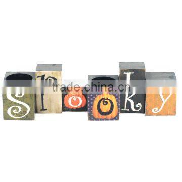 2017 Spooky Wood Carved Pumpkin Printing Halloween Decorative Wholesale Candle Holders