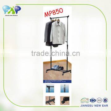 Stainless Steel Single-pole Mobile Standing Lift Laundry Drying Rack With Shoes Shelf