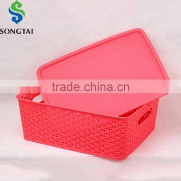 Rattan Laundry Plastic Basket Sundries Storage With Lid & Handle