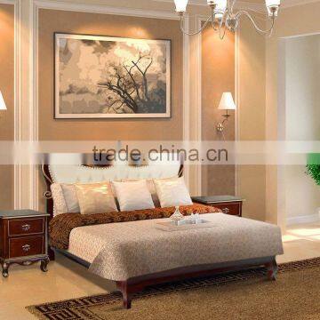 Add style to your home’s guest or master bedroom with this beautiful bed. Offering a clean yet elegant design this bed is the perfect oasis for a nights rest, with soft curves and a shapely design. in a deep mahogany finish, this bed will embody a true traditional style for your bedroom. This bed is available in queen, and king sizes to meet your needs and fit your space.
