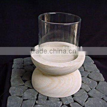 CANDLE HOLDER FOR 1 CANDLE, WITH GLASS WINDPROOF SET, MADE OF STONE