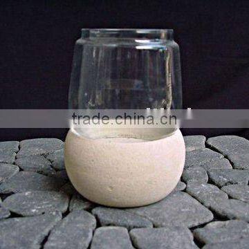 CANDLE HOLDER FOR 1 CANDLE, WITH GLASS WINDPROOF SET, MADE OF STONE