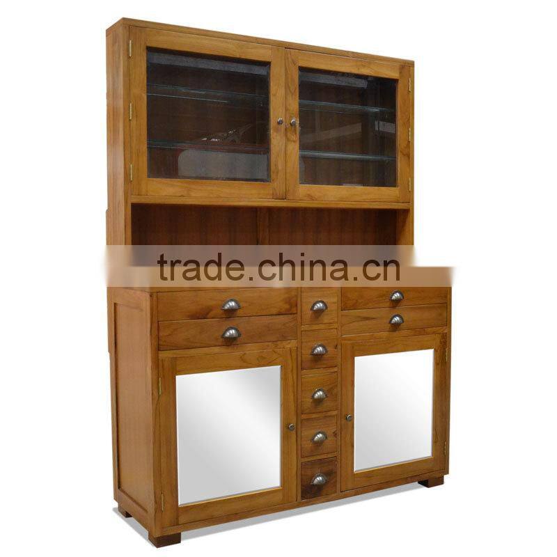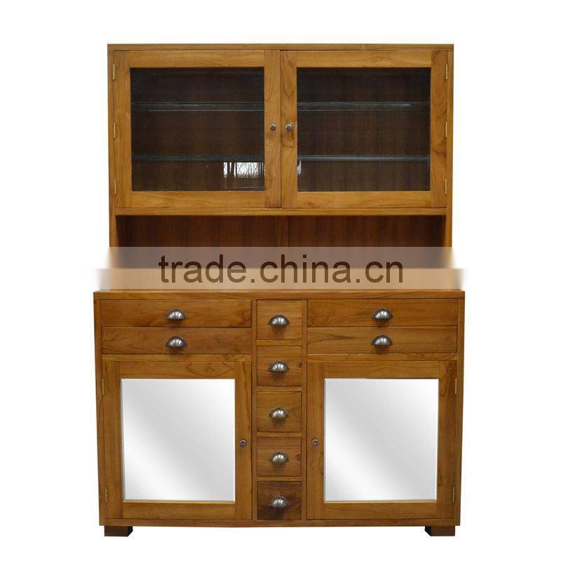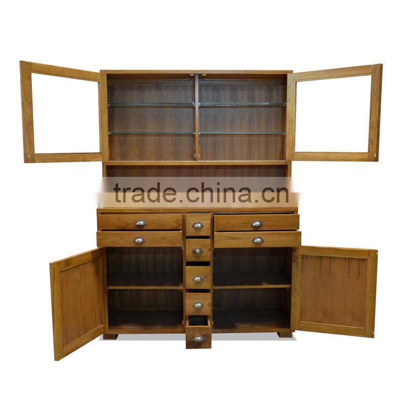 Cabinet Kitchen Minimalist With Glass Door Teak Wood Furniture, Wooden Furniture Minimalist From Indonesia