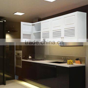 Half Of Louvre Design On the Door, For air circulation inside of cabinet. France style door, White color , to look clean everyday.On the Middle Of cabinet with shelf inside. Brass Knob to Full the Doors.