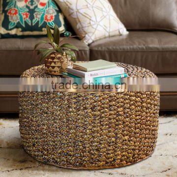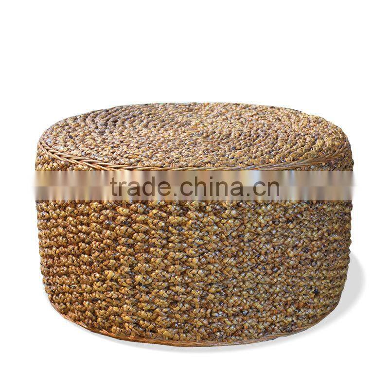 To complete the needs of coffee table shaped furniture, you can have our product, this table made from wicker water hyacinth as the overall coating of the stool form, this stool we only recommend for use in the room, because the material is made From organic material.Stool is very strong to sit on, even in use as a coffee table as well, because the frame and construction on the inside we make with teak wood, so guaranteed the strength to hold reasonable load according to its function. This Stool stained with medium dark color.