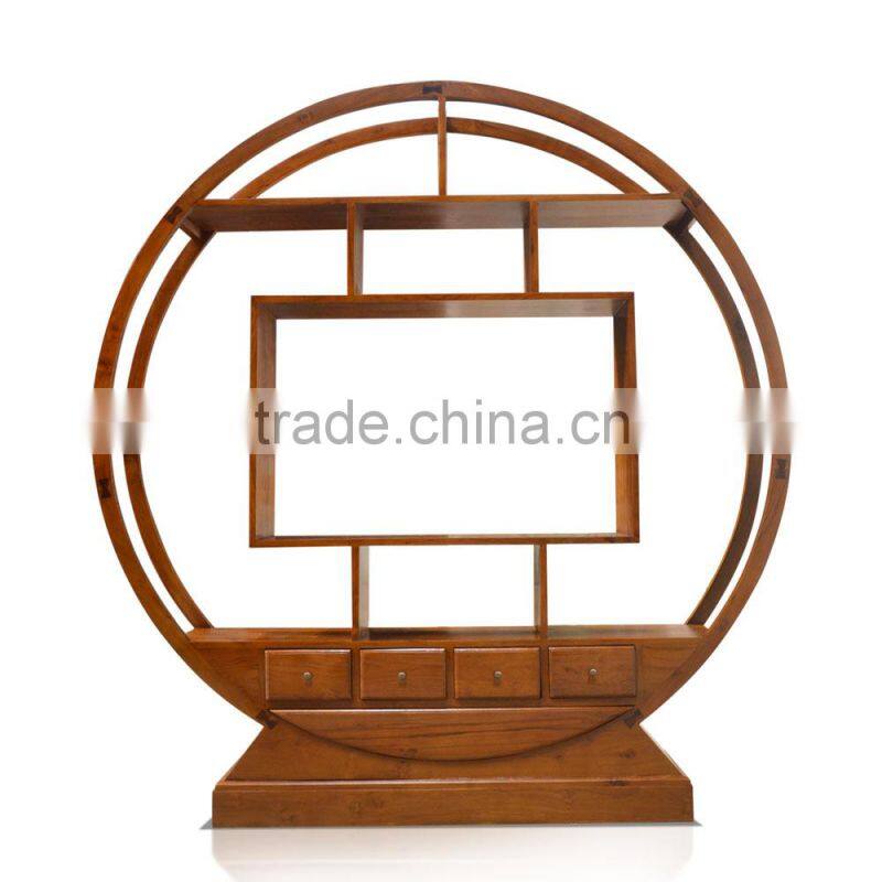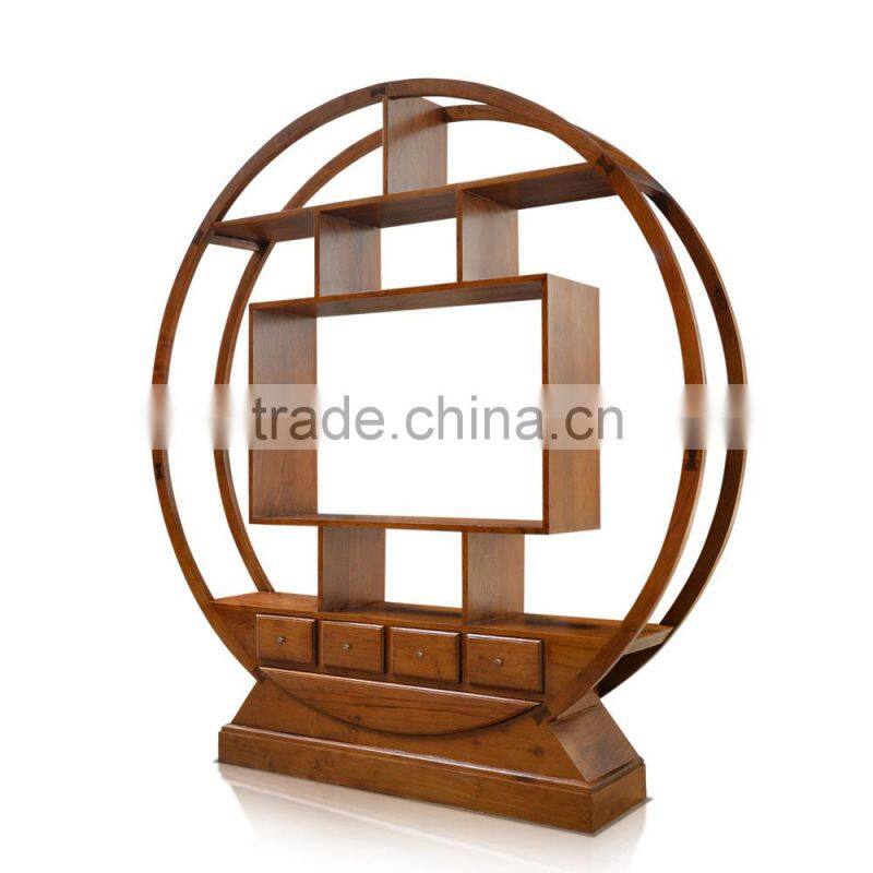 Cabinet TV Rack Circular Oriental Teak Wood Furniture, Japanese Teak Furniture Style Handmade