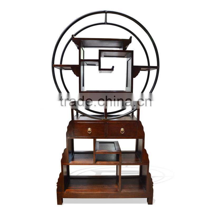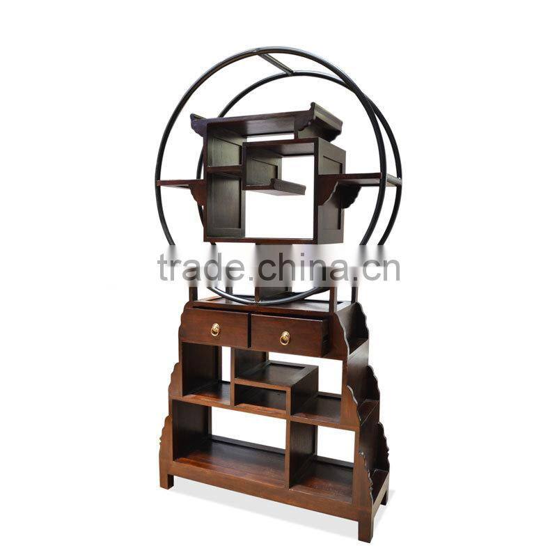 Bookshelf or display shelves with models and oriental design, made of wood combined with iron to the top of the circular cross-section. it is suitable for the place in the living room or in your personal space, to put a unique item according to your taste. display rack is also equipped with 2 drawers in this part of the top, using the handle made of brass.