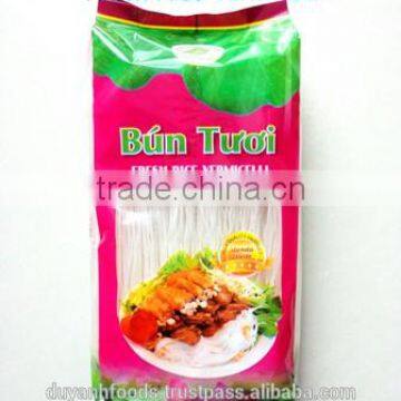 Put vermicelli in the boiling water from 5 to 7 minutes (Try vermicelli strands pressing, soft is fine), then fish out, drain. It will get the same quality as fresh vermicelli. Can be used with pork soup, springroll, grilled pork or beef noodle ...