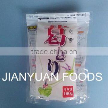 Our this kind of vermicelli is made from top quality potato starch and kudzu starch. It is refined by advanced equipments, isolated production and strict management. It has many characteristics including good flexibility, homogeneous shape, pliable and smooth mouthfeel. It is transparent and shining. This product can not fracture even if it is boiled for a long time. It can not slip off when we eat it by chopsticks. Two pieces can not merge and it also can not be overcooked even if it is cooked for a long time. Our kuzukiri vermicelli is a good material for hotels and restaurants and it is an excellent gift for friends and relatives.