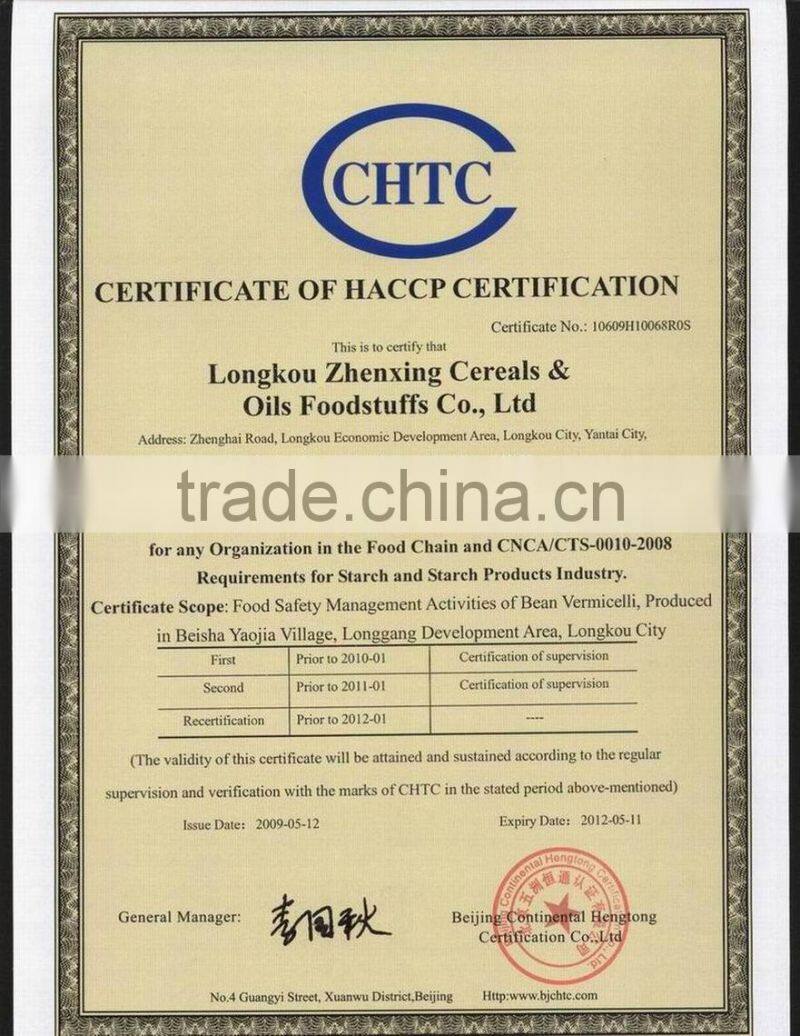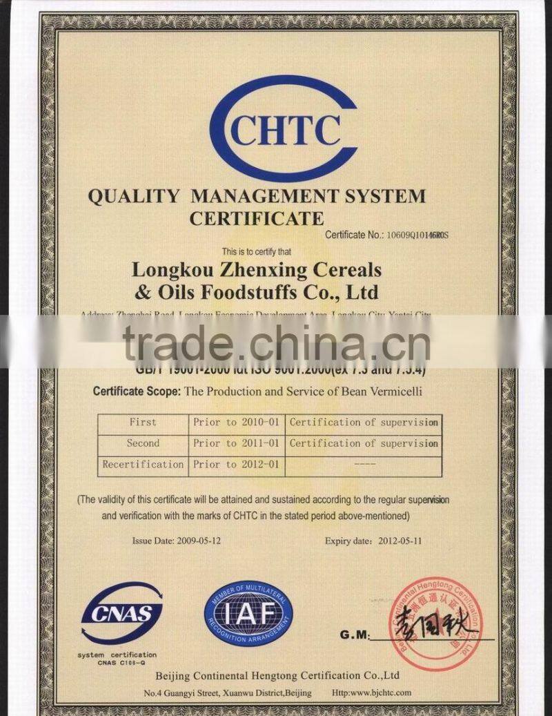 6:Natural Longkou pea Vermicelli Quality/Safety Certifications: ISO9001, ISO14001, HACCP, No irradiation, No GMO, SO2<15ppm.