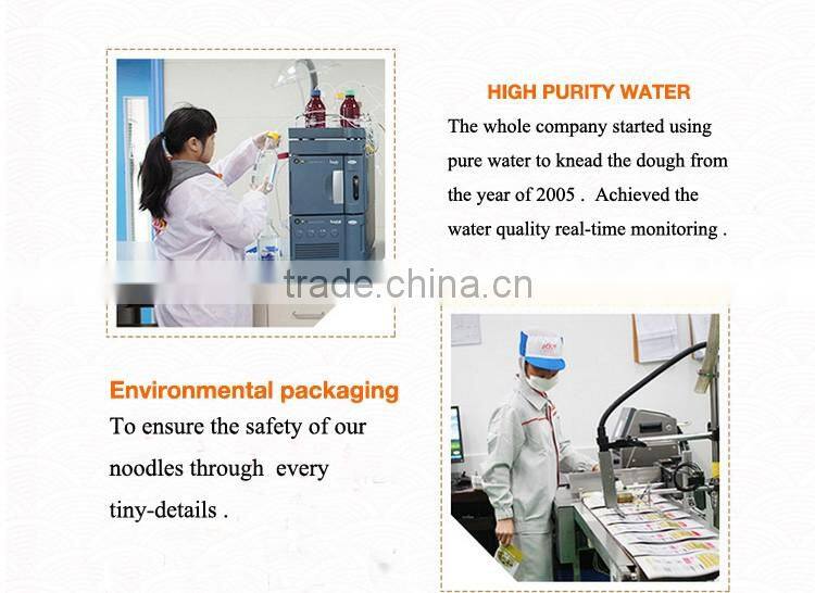 We have a third party inspection institutions in changsha. We adopted on wheat raw materials inspection of imported testing equipment, monitoring, respectively on the microorganisms and some pesticide residues, and the detection of trace element and so on. In the purchase of wheat to try after repeated sampling. Through the strict examination can be put in storage after use.Production use of water is adopted in secondary reverse osmosis pure water. Some noodles used raw materials are all from plant extracts, additive in full compliance with national standards.