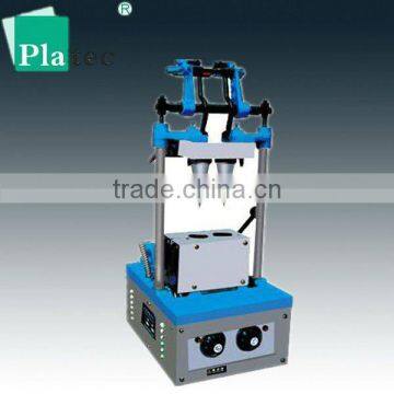 Egg tube machine design humanized, simple operation, this machine is divided into the upper mould, available by temperature control knob, will let the temperature first adjustable up,, when temperature rose up , upper mould pull up, down mould close, pour paddle material, and let upper mould and down mould close completely, about one or two mints later, egg tube to forming, then pull up the upper mould, down mould opened, egg tube will automatically fall into the following of channel within and sliding out .