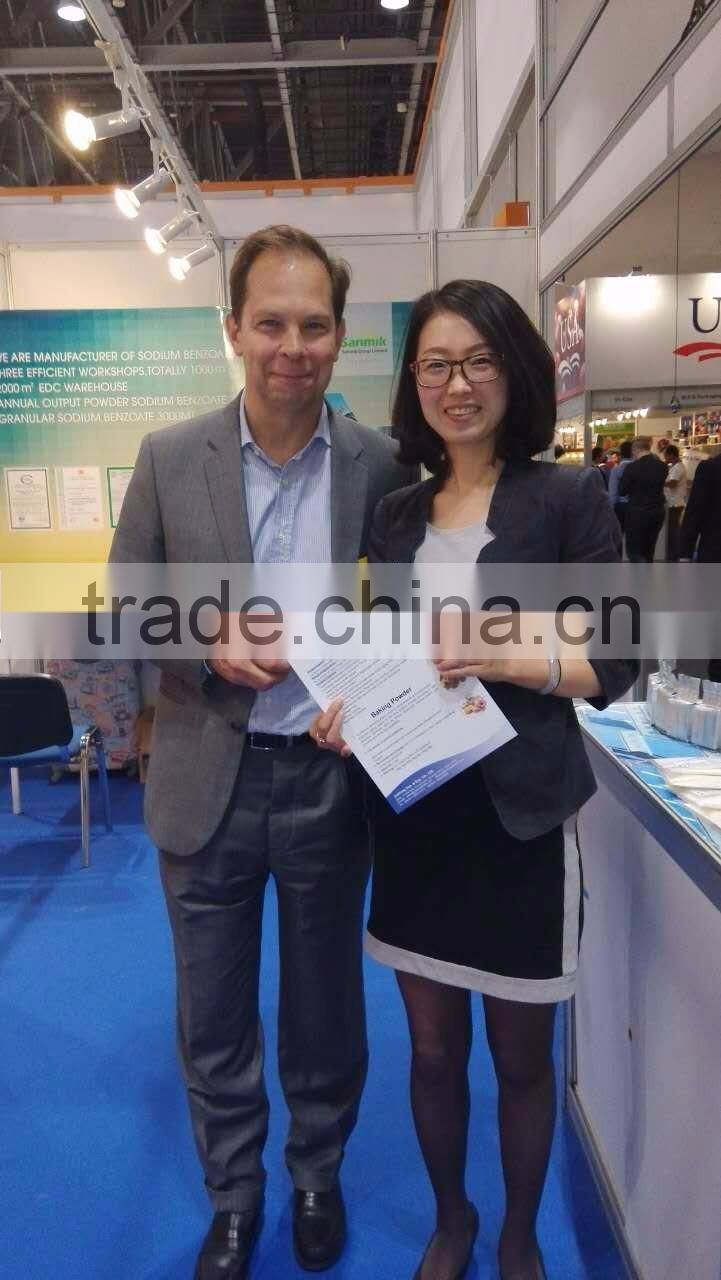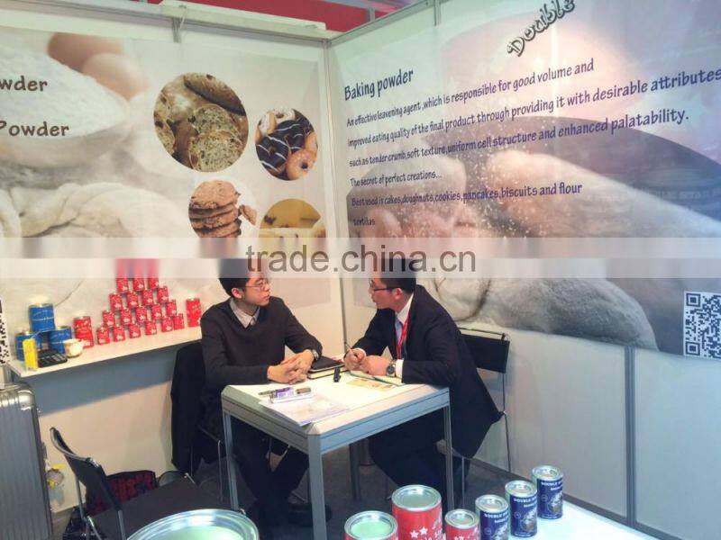 Baking powder:This product does not contain aluminum, has double-effect foaming function, and is suitable for making cakes, bread, fried snacks, refreshments and etc. Dosage: 0.5-2% of the amount of the flour;