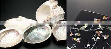 Methods of application are varied. Thick shell pieces may be inlayed into pre-carved settings, while thinner pieces may be pressed into a very thick coating of lacquer, or applied using an adhesive and then lacquered over. Other methods use acid washing and lacquering to produce different effects.