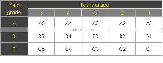 ![]() | The grading of this beef is determined through assessing the yield grade and fleshy grade of carcass.