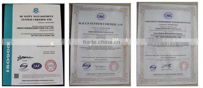 We are dedicated to the fine art of enjoying Chinese tea and the distribution of the finest teas available worldwide.We specialize in the production of various kinds of tea.Now our main categories of tea are green tea, black tea, teabag , flower tea, flavored tea,fruit tea,artistic blooming flower tea , eight treasures tea (babao tea), herbal tea, tea powders & pollens, instant tea,oolong tea,pu er tea, white tea,milk tea,spa,tea food,local specialty,tea wares , Healthy Tea Pillow ,etc. Our products are popular not only in home market but also popular in abroad.We have many years' experience in OEM.