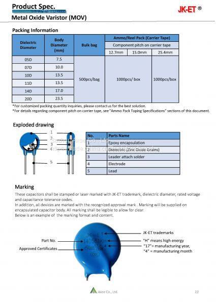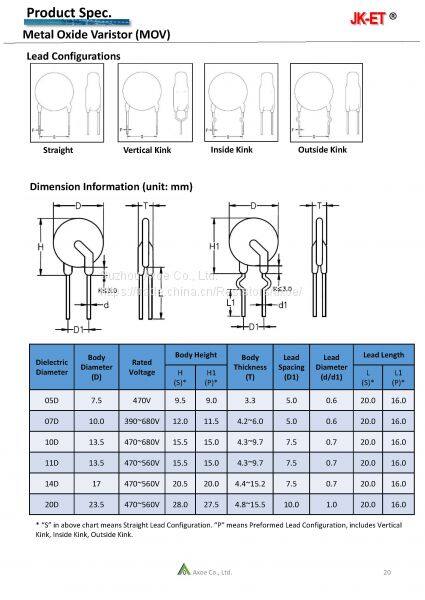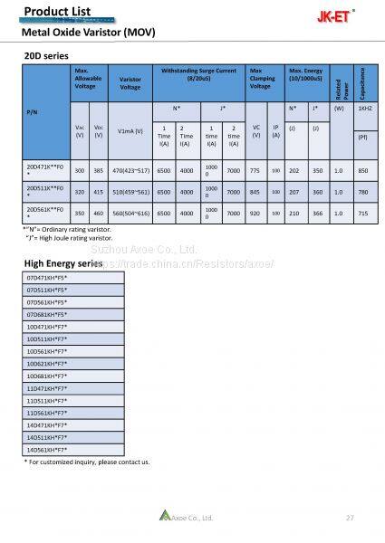 Varistor, Metal Oxide Varistor, MOV, 14D561K Disc. Ceramic Resistors