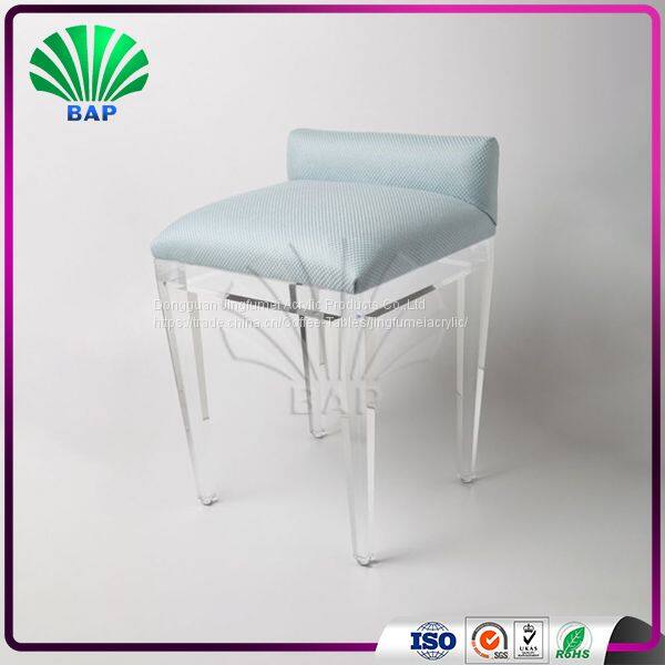 Eco-Friendly Acrylic Leg Stool Living Room Kids Stool Leather Cushion Plexiglass Ottomans