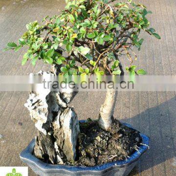 Ulmus and stone are arranged into a bonsai. It’s an excellent indoor bonsai tree, good choice for decoration at home or office.