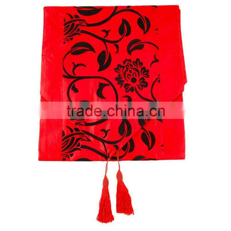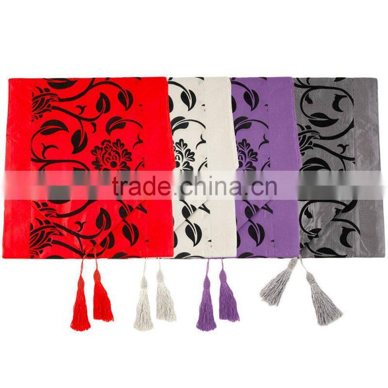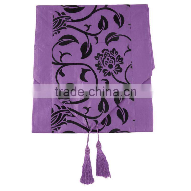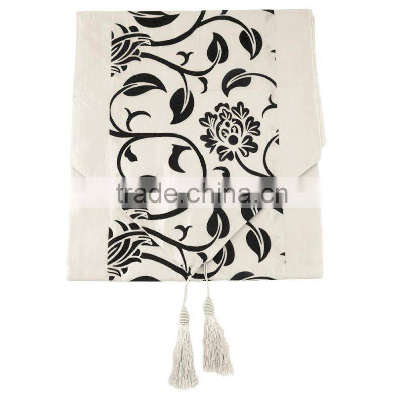 Flock Floral White Taffeta Retro Decorative Wedding Bed Table Runner Cloth