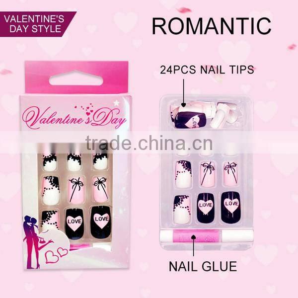 2017 Wholesale Valentine Love Design Fake Nail Art Design for Beauty