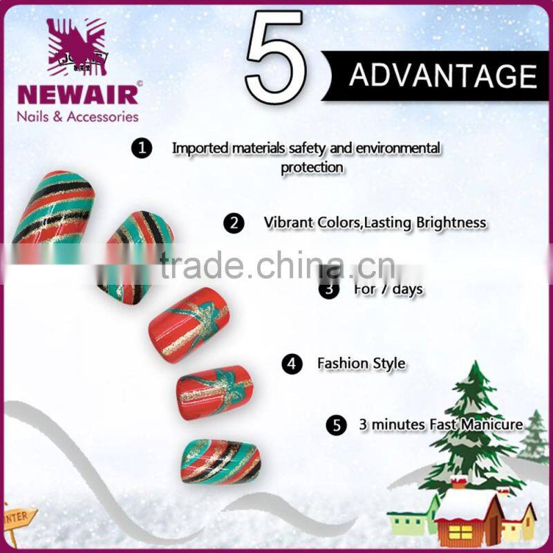 2017 Custom Colorful Elegant Artificial Nail Art Design With Glue