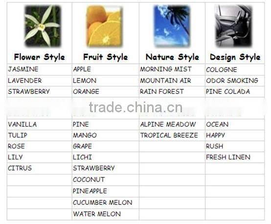 6. Various scents is available, such as lavender field, Japanese cherry blossom, rose, ocean blossom, lily, jasmine & hyacinth etc. Most of our fragrance is from CPL. At the same time, we can use the fragrance which is specified by customer;