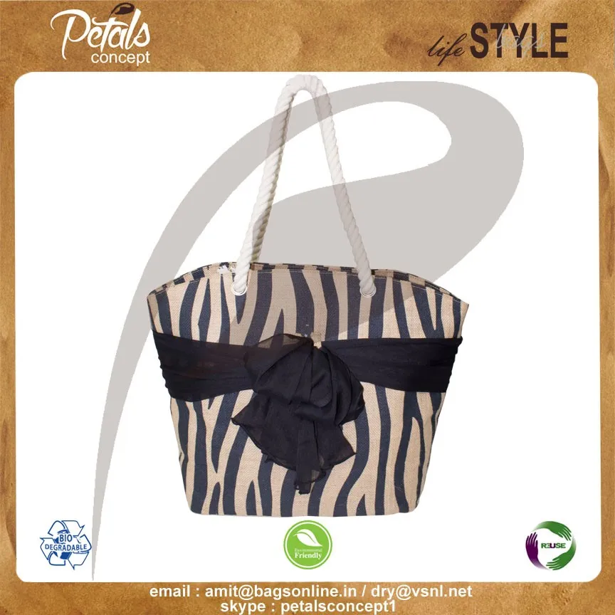 Our beautiful bags come in different shape , style , Size & design with variety of print like floral design , Animal texture print , landscape print , logo , Nature print , Stripe print etc with various option of Handle like Jute , cotton , web handle, Wooden handle ,Cane handle, Leather handle , Padded Rope handle , Bamboo handle etc & can be customize according to requirement.