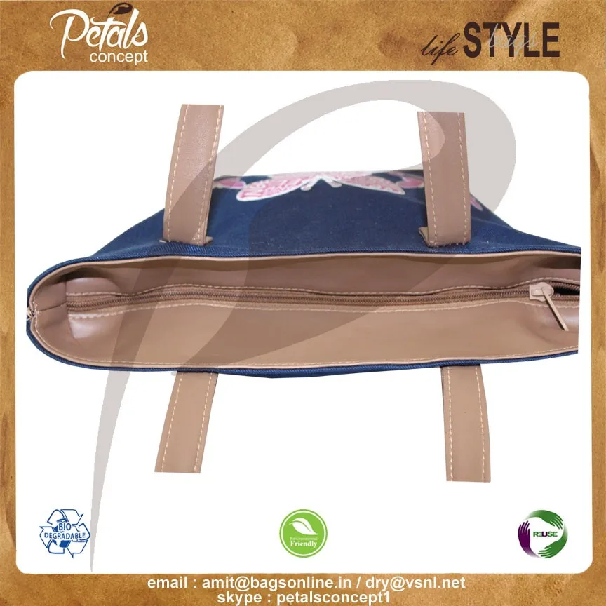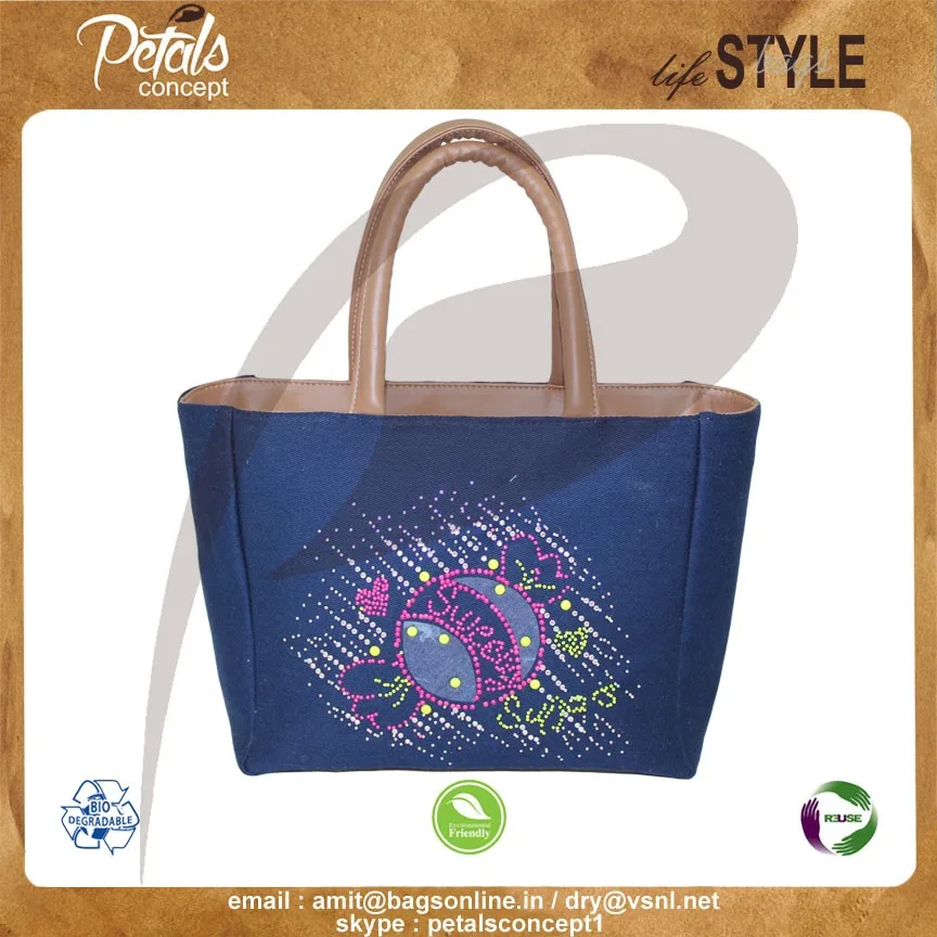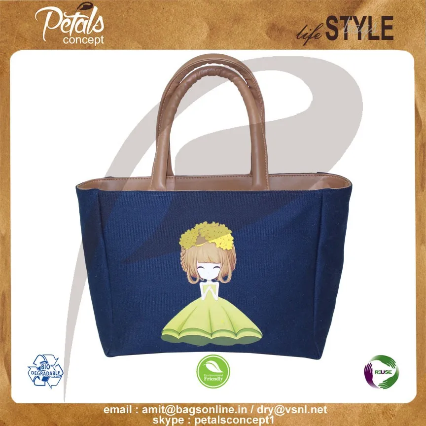 Our beautiful bags come in different shape , style , Size & design with variety of print like floral design , Animal texture print , landscape print , logo , Nature print , Stripe print etc with various option of Handle like Jute , cotton , web handle, Wooden handle ,Cane handle, Leather handle , Padded Rope handle , Bamboo handle etc & can be customize according to requirement.